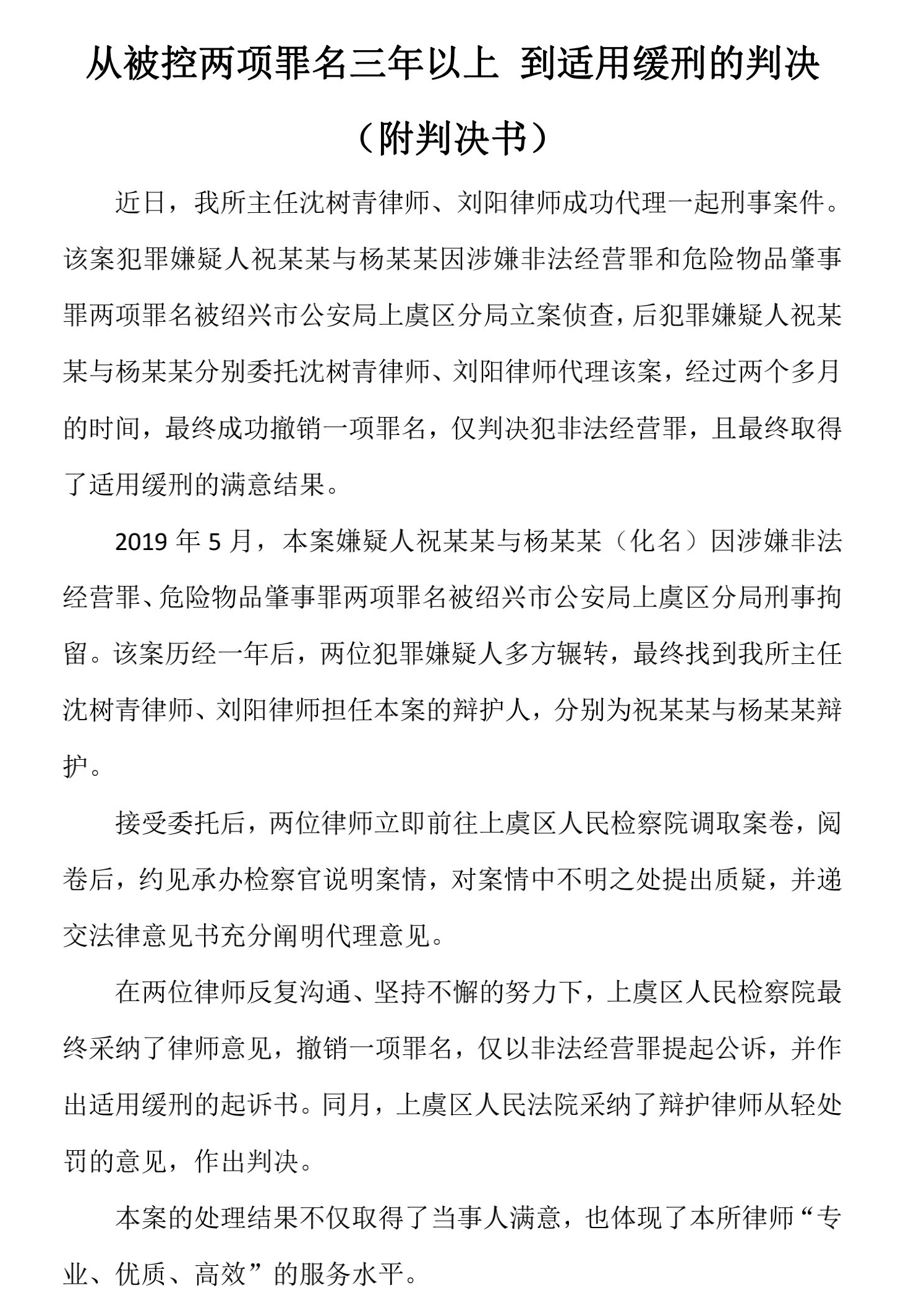 从被控两项罪名三年以上 到适用缓刑的判决(附